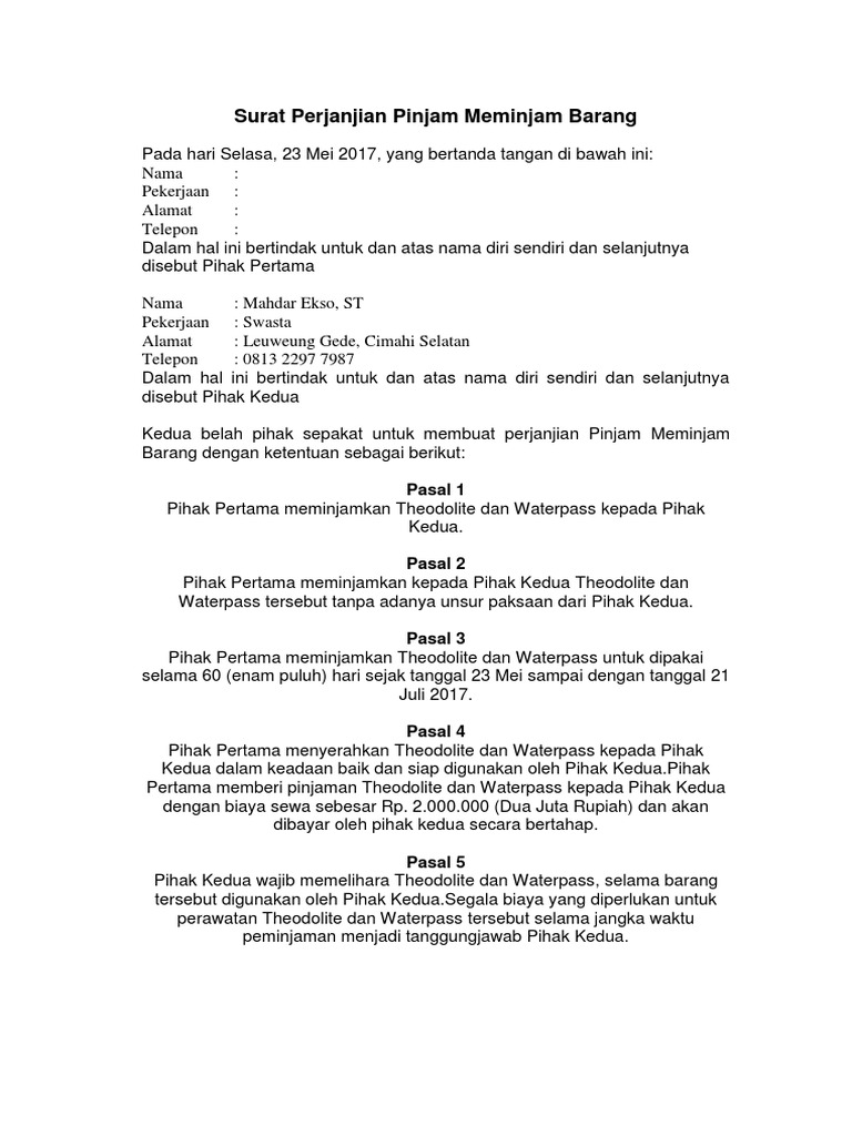 Lihat 214+ surat perjanjian peminjaman barang. Cek juga perjanjian dan surat perjanjian peminjaman barang
